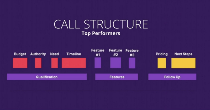 According to Gong.io, top-performing sales reps follow a process that mentions topics sequentially, giving the whole call a good flow.