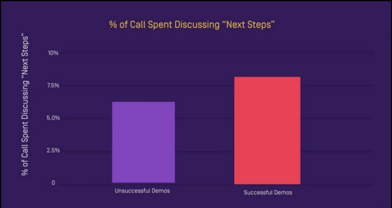 According to a study by Gong.io, successful demo calls spend an average of 12.7% more time talking about next steps than unsuccessful demo calls.